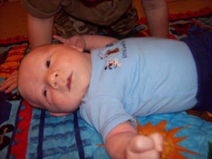 Luke had a tough weekend (as did we all.. well, except Eli! He had no clue what was going on!). At the Dr’s office on Thurs Luke fell asleep sitting in the Hubs lap. He was really sleepy all day long and that night I took his temp and it was 102. He had no other symptoms but was just kind of cranky! Friday he ran a low grade fever and was cranky and didn’t nap well at all. He woke up 45 minutes after being put down and was really hard to console when he got up! I knew that he was in pain but wasn’t really sure where. We noticed a little spot on his lip that night but I though it was just where he had bumped it. Well, Friday night he slept horribly! He was up on and off all night long. The Hubs did a great job at doing what he could to help the little guy but he was really just beside himself. Saturday we called the on call nurse and she suggested we watch him the rest of the day and assess the situation in the am. Well, that was a bad idea! By Sat night we both knew he needed to see a Dr. We realized that the little bump (which now had another one by it) was more like a fever blister of some sorts. Luke wasn’t eating and was just not acting himself. He was crying constantly and was certainly in pain. So, the Hubs took him to an after hours clinic around 6pm and thankfully my mom met him there. Well, it seems that Luke has/had some kind of viral infection that causes blisters inside the mouth and throat. And it is very painful. The only thing you can do for it is give pain relievers.. although the Dr did give him some cough medicine to help dry up the blisters (which I think really helped.. plus helped him sleep!). My mom decided to stay the night with us (a huge blessing!). I mean I kind of have my hands full with a 4 week old so the Hubs needed some reinforcement. I think Luke may have slept 3 broken hours Saturday night. It was horrible. I think we all cried at some point (with Luke doing the most of it). I couldn’t stand not being able to help him. He refused to take any kind of medicine at all. We finally called my dad and he came around 5:30am. Luke finally calmed down some with my dad and we actually got him to take some
