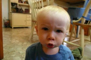 Feels strange to move from potty talk to food talk but oh well… such is my life! Luke is still a very picky eater. I often joke that he would starve if we didn’t have chicken nuggets and bread. Luckily, I make sure we never run out so we’re ok. The Hubs and I are sticking to our guns at supper time. He eats what we eat or he doesn’t eat. Our rule is that he must put two things that we are eating on his plate (that way he doesn’t just have a roll on his plate). He may not eat it but it has to at least be on his plate. He’s doing okay with this although he does sometime still want to throw a fit just for having something like green beans on his plate. I do allow him to substitute a veggie or fruit for one item. For instance last night we had taco soup and corn bread. He had corn bread and apple slices. Sounds like a horrible meal to me but I refuse to make him chicken nuggets or grilled cheese every night. I just keep praying that one day he will grow out of this. Yesterday he did eat fish sticks for lunch, which was a first. I know it’s not the healthiest of things but it’s nice to have another alternative to chicken nuggets! I had tried them with him before but he refused to eat them. I didn’t tell him what they were this time. I just put them on his plate and he started eating! I mean it’s breaded and crunchy, must be good right?? Ha!