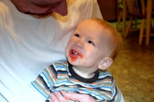 As far as eating goes, Eli is a good eater. You can’t tell by his size though. He is tiny! I get comments all the time on his size! He will try most anything I put on his tray. Occasionally he will refuse something new but most of the time he will at least put it in his mouth. I do feed him though, and he does eat! He just burns every thing off because he never stops! And for those who are curious, I am still breastfeeding him, 3-4 times a day. I can’t believe it either but I am thankful for it! He normally nurses when he gets up, before nap and bed and if he gets up during the night.. which out of the past week he’s slept all the way through the night 4 times!! WOO HOO! Most of the time, if he does get up at ‘night’, it’s around 5ish am and he goes back to sleep. I have not yet had anyone (to my face) say anything about nursing him beyond 1 year but I do know of a few who are just ‘surprised’ to find out I’m still nursing. I’m totally okay with that. I just find it funny that if he was bottle fed and they found out he was still taking a bottle before bed, they wouldn’t bat an eye! I mean he’s only 14 months old! I’m just taking it one day at a time and right now, I know he needs it. Not nutritionally so much, but emotionally. It’s comfort, just like a blanket, stuffed animal or a pacifier. But those things are just that, things! His comfort gets to come in the form of me, his mommy! And I think that is a wonderful thing. I find it sad that in our country extended breastfeeding is looked at as strange. Ok, I’ll hop down off this soapbox before I go any further! 😉