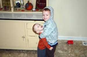Surprisingly, he also likes to play quietly alone by himself some. Occasionally, it will get quiet and I’ll get nervous! 😉 Then I’ll go check and I’ll find Eli sitting alone in Luke’s room looking at a book or playing with the Little People Barn. He’s a big fan of that barn! Santa’s bringing him Little People Noah’s Ark!
