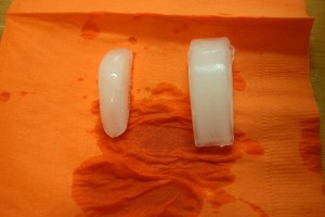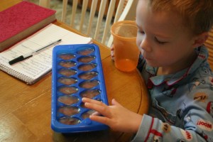 After naming off lots of letter I words, we did a fun science experiment! Luke had two bowls, one with hot water and one with cold water. Then he put two ice cubes in each bowl! Which ice cube melts faster? He had so much fun with this and it was a great way to talk about solids and liquids/hot and cold. Lots of learning!
