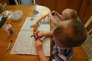 Then we glued eyes and and poked two holes on top and weaved pipe cleaner through for the feelers! Cute Inch Worms!