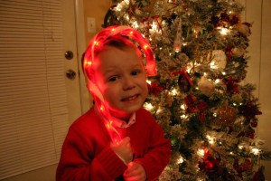 I was attempting to take some cute pictures of the boys in front of the tree…