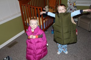 And last, here are my two munchkins wearing two new vests that I got for Christmas early. I’ve never been into the puffy vests but I’m liking them this year. I haven’t completely decided on the pink one. The boys look so funny in them!