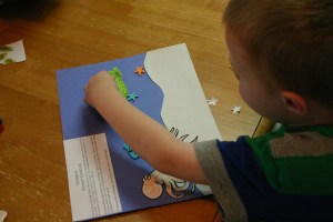 Next we did a Ocean scene and talked about ocean creatures and plants! We also watched several videos on National Geographic Kids about different kinds of sea creatures. I know we watched a few about Octopuses (Yes, I looked it up and it’s a legitimate word for the plural of octopus!)! They are amazing creatures!
