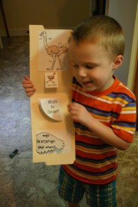 Next Luke made his very first lapbook on Ostriches! We found the ostrich lapbook on Homeschool Share. I just used what I thought Luke would enjoy and could understand.