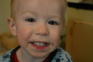 We made Pumpkin Chocolate Chip muffins! And I remember that I forgot to take pictures of the process but I did remember to snap their faces after they ate!