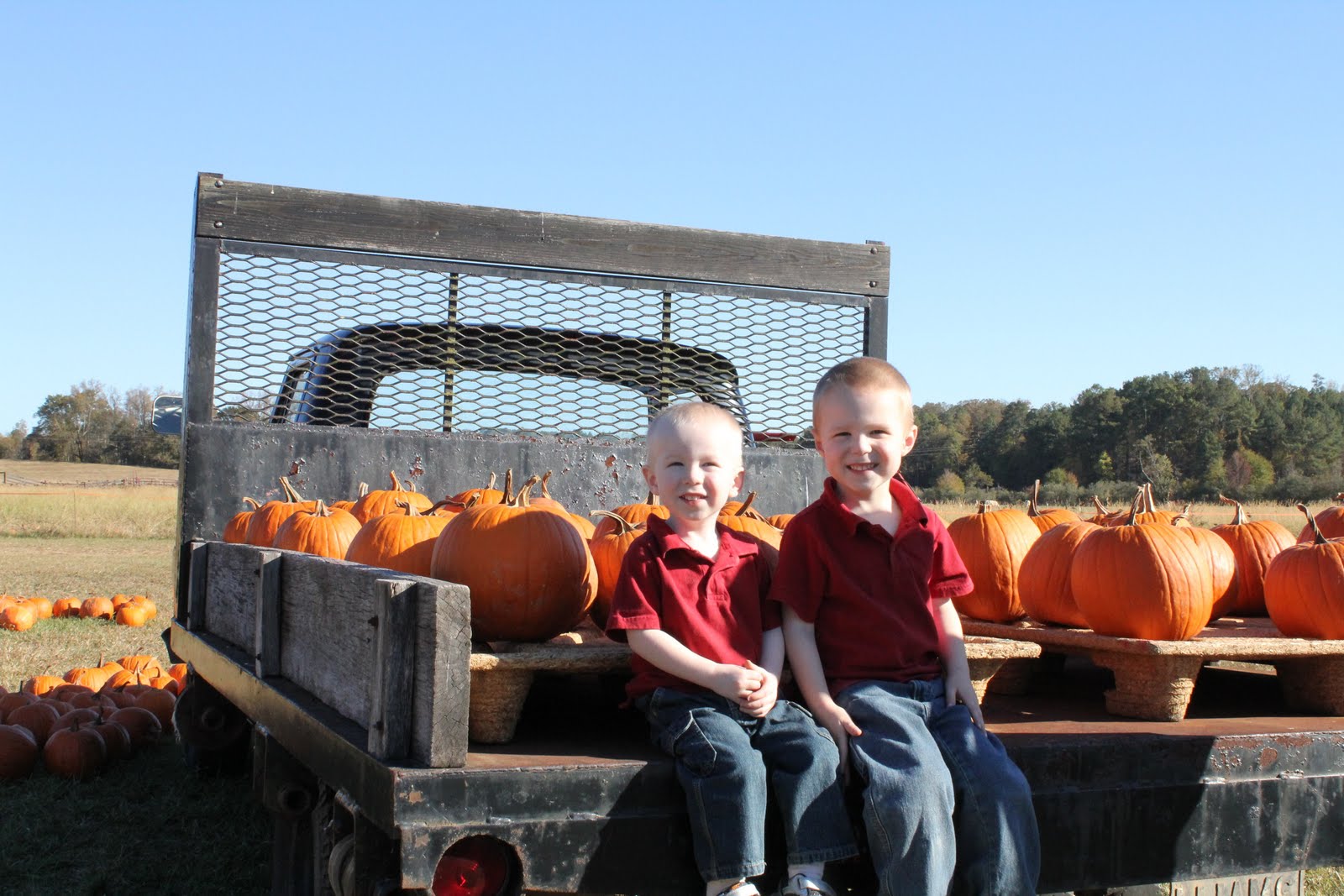 And we visited a local Pumpkin Patch!! The boys had fun running through the pumpkins, petting the anmials, riding the hayride and especially playing in the corn crib!
