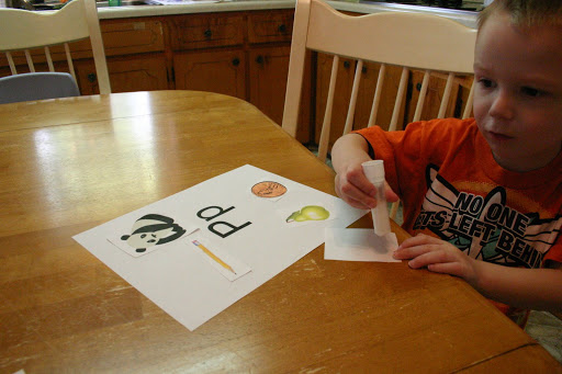Here is Luke doing his Homeschool Creations Letter P collage!