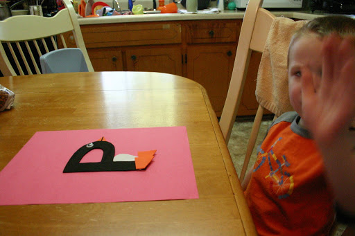 I think Luke was tired of pictures here! We made our P is for Penguin letter craft from Totally Tots!