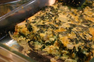 Put sauteed vegetables into large bowl and add cheese, beaten eggs, splash of milk (2-3 TBS) and seasoning. Stir gently until ingredients are well mixed. Butter dish and pour in egg mixture. (I used a pan that’s 11.5 X 7.5 inches but an 8×8 would work, probably would need more bake time to set up) Bake 20-25 minutes until eggs are well set and the top is lightly browned.