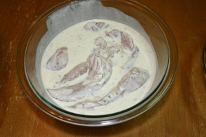 I used chicken tenderloins for this but you could also use chicken breast. Don’t you love a good picture of raw chicken? Marinate chicken in dressing (have you tried