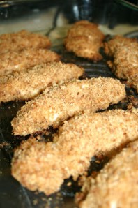 Lay all of your chicken into a lightly greased 9 x 13 pan. Try not to let them touch, though that’s not easy as you can see in my picture! The little bit of space between them helps them to get crispy on the bottom! Oh and don’t forget to soak your hands in clorox and then scour them under hot water since you were handling raw chicken… and then clorox every surface of your kitchen! Just kidding….