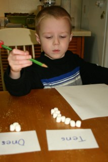 School started back for us 2 weeks ago. There are a few things that have changed this semester from last semester. Luke is doing well in all of his ‘subjects’. He’s doing great in his phonics but we’ve had some rough patches. I think we’re on lesson 56 of 100. We could easily be finished if I pushed it, but that would be torture for both of us. I refuse to compare my child with anyone else and I refuse to ‘make’ my five year old do school just for the sake of doing it. I want him to love to learn and I want him to have fun (and me too!). So, all of these thoughts have brought about a little change. We are more loose with school this second half. I haven’t thrown out the books or anything but our school hours aren’t necessarily an hour and a half long. We always read our Bible…. sometimes we play a game, paint, draw or read… then we eat lunch. Then we may have a math lesson with Cheerio’s. In fact today we did! He had to place the correct number of Cheerio’s in the tens and ones place! We also played a thinking game by taking a few objects and putting them in a bowl. I’d remove one and the boys had to try and remember what was missing! That was fun and they kept playing even after we were ‘finished’. Earlier in the day we spent time at the library where they had story time and made a snowman out of marshmallows with other kids! Tonight Luke read us a story out of his phonics book. The point: none of this was work.. it was fun and Luke enjoyed it. School has been much more relaxing and ‘one piece’. I like it. And I’m pretty sure the boys do too. π