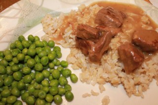 Heat oil in stock pot. Add beef stew meat with the sliced onions and brown (I peppered them lightly, be careful with the salt though, especially if you are using beef broth or full sodium soy sauce. I didn’t salt mine at all until the end!). Once the tips are browned add 3 cups of water, plus 3 tablespoons of soy sauce, scraping any bits off the bottom of the pan. Bring the mixture to a boil then cover and reduce heat to low. Cook on low for 1.5-2 hours or until tender. I added one more cup of water with soy sauce at about the 1.5 hour mark, so just watch your liquid. It wasn’t absolutely necessary but it made more gravy, which we like! 🙂 Mine took right around 2 hours. Once the beef tips are tender, add in your parsley and garlic powder and turn the heat up to a low boil. Make a slurry with the 1/3 cup of flour, plus 3/4 cup of water. What this means is to mix your flour and water together with a fork until the flour is incorporated. Once your beef mixture is at a low boil, add in your slurry stirring constantly. Continue stirring until you get the thickness you desire and to cook out the flour taste (about 5 minutes). You may have to add more slurry if you want a thicker gravy. Taste to season, add salt and pepper as needed. Serve over cooked rice.